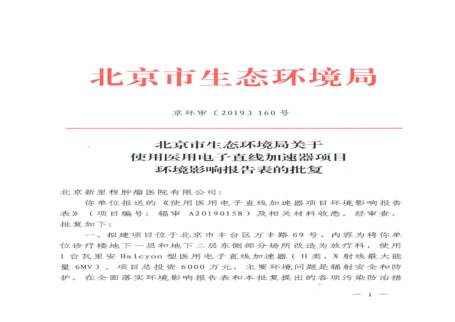 中環(huán)長(cháng)青成功開(kāi)辟環(huán)保輻射安全咨詢(xún)許可辦理業(yè)務(wù),具備專(zhuān)業(yè)能力,在環(huán)保及其相關(guān)領(lǐng)域為企業(yè)保駕護航!2019年12月24日,協(xié)助北京新里程腫瘤醫院取得北京市生態(tài)環(huán)境局關(guān)于使用醫用電子直線(xiàn)加速器項目的環(huán)評批復,并在后續的系列環(huán)保輻射安全咨詢(xún)許可事宜辦理中提供強有力支持。