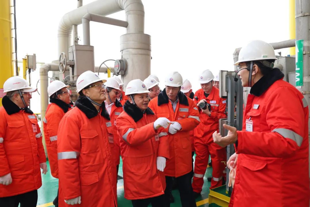 秦皇島32-6油田位于渤海中部海域,是我國第一個(gè)從開(kāi)發(fā)階段就由中方擔任作業(yè)者的對外合作油田。20日一早,黃潤秋一行乘機前往秦皇島32-6油田CEPI平臺,調研海上石油勘探開(kāi)發(fā)設施生態(tài)環(huán)境保護與應急工作。黃潤秋來(lái)到平臺生產(chǎn)區,聽(tīng)取油田概況、采油工藝以及相關(guān)設施運行情況,詳細詢(xún)問(wèn)事故應急處置程序、生產(chǎn)廢水和含油污泥的處理處置情況,并現場(chǎng)察看經(jīng)處理后的生產(chǎn)廢水,對平臺關(guān)閉生產(chǎn)水排??诘淖龇ū硎究隙?。在中央控制室,黃潤秋詳細了解企業(yè)開(kāi)發(fā)的渤海油田海管、海纜生產(chǎn)設施防破壞預警系統及智能油田管理系統情況,并觀(guān)看功能演示。在岸電控制間,黃潤秋充分肯定平臺引入岸電、原油發(fā)電機全部退出使用,鼓勵企業(yè)繼續大力推進(jìn)岸電工程,為減少環(huán)境污染排放,實(shí)現碳達峰碳中和繼續貢獻力量。黃潤秋還詳細了解平臺生活污水和垃圾收集處理情況,察看海洋環(huán)境監測實(shí)驗室。隨后,黃潤秋來(lái)到平臺甲板,觀(guān)摩參加海上溢油事件聯(lián)合應急演練的“中國環(huán)監001”海洋監測船、中國海油專(zhuān)業(yè)環(huán)保船、消防船、救助船、三用船環(huán)境應急功能演示。