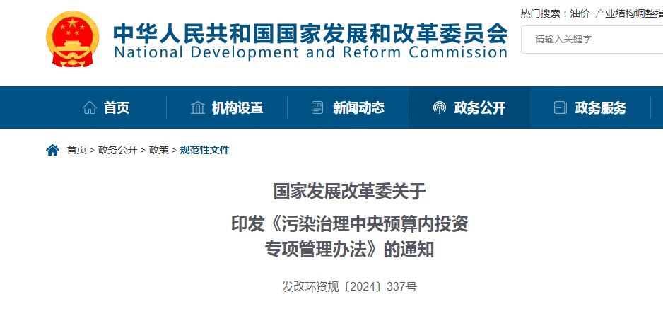 事關(guān)污染治理中央預算內投資!國家發(fā)改委印發(fā)專(zhuān)項管理辦法