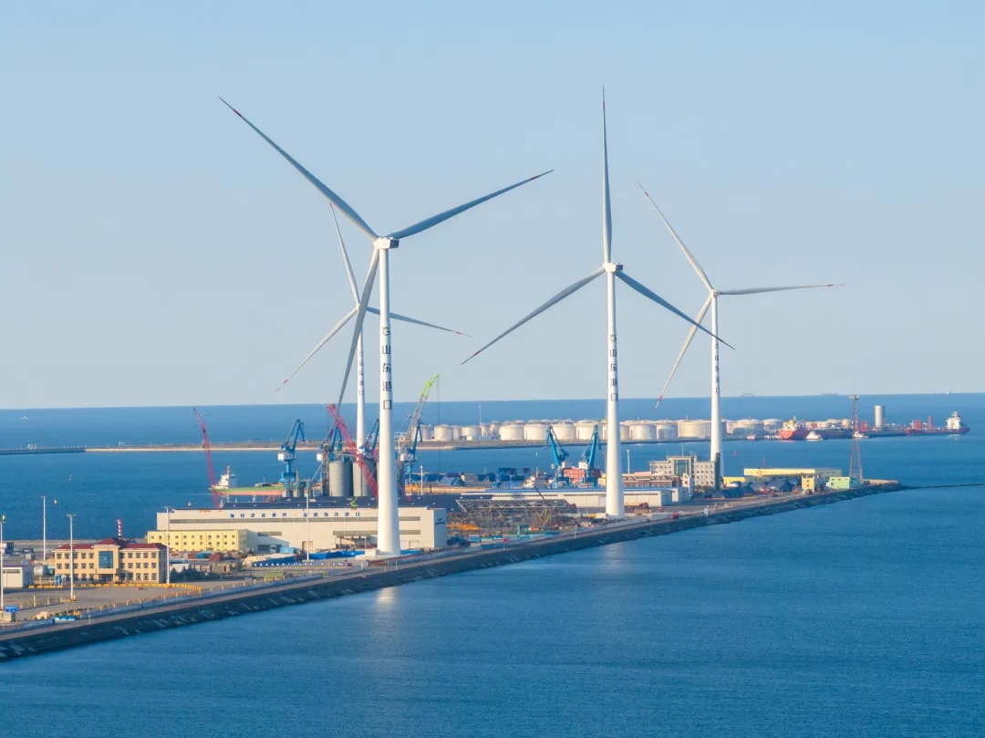 在“零碳港口”建設過(guò)程中,濰坊港持續推進(jìn)能源結構清潔化。9月30日,濰坊港4臺6.7MW風(fēng)機并網(wǎng)成功,成為山東省首個(gè)并網(wǎng)發(fā)電的陸上分散式風(fēng)電項目,年可用發(fā)電量超7000萬(wàn)KWh,可滿(mǎn)足整個(gè)港區用電量,冗余電量還能通過(guò)電網(wǎng)供社會(huì )使用。不僅為濰坊港每年節省用電成本約960萬(wàn)元,而且與相同發(fā)電量的常規燃煤火電機組相比,每年節省標煤2.1萬(wàn)噸,減少二氧化碳排放5.7萬(wàn)噸,減少排放煙塵1.5噸,減少其他廢氣二氧化硫7噸、氮氧化合物10.5噸。