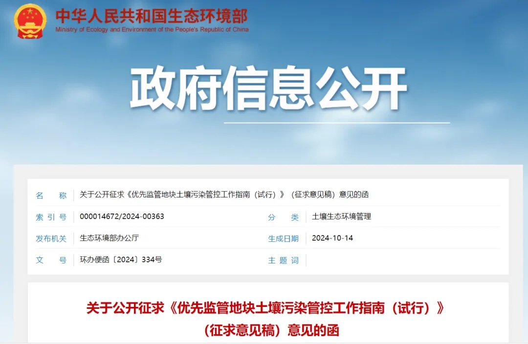 生態(tài)環(huán)境部正就《優(yōu)先監管地塊土壤污染管控工作指南(試行)》公開(kāi)征求意見(jiàn)