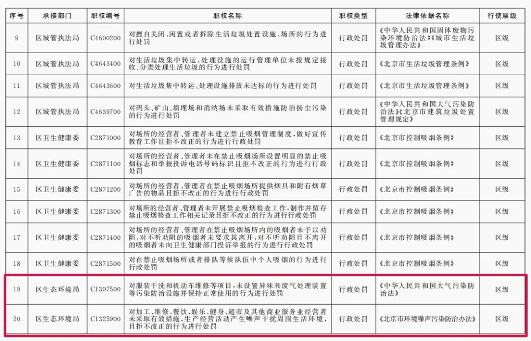 此次調整涉及12項職權,涵蓋城市道路、照明、河湖及垃圾管理等領(lǐng)域,將重新收回到區城管執法局行使。同時(shí),控制吸煙的6項行政處罰權交由區衛生健康委負責,將生產(chǎn)經(jīng)營(yíng)活動(dòng)產(chǎn)生噪聲干擾、服裝干洗和機動(dòng)車(chē)維修等項目產(chǎn)生異味和廢氣等2項行政處罰和與之相關(guān)的行政檢查職權收回到區生態(tài)環(huán)境局行使。