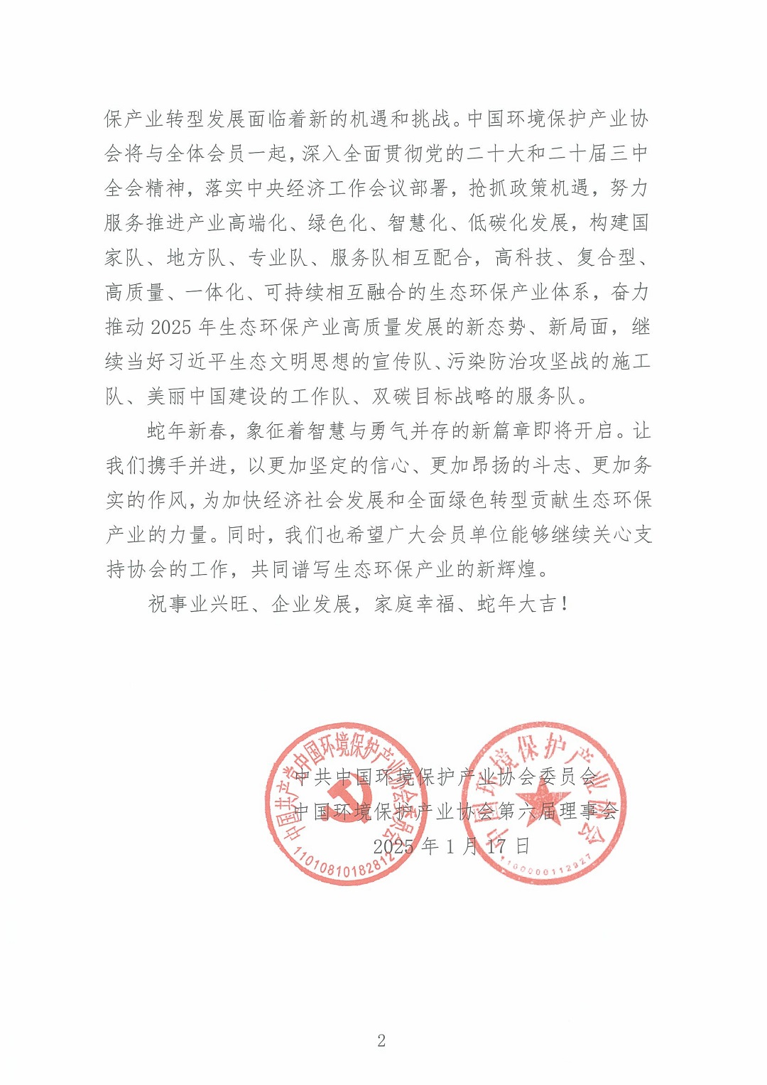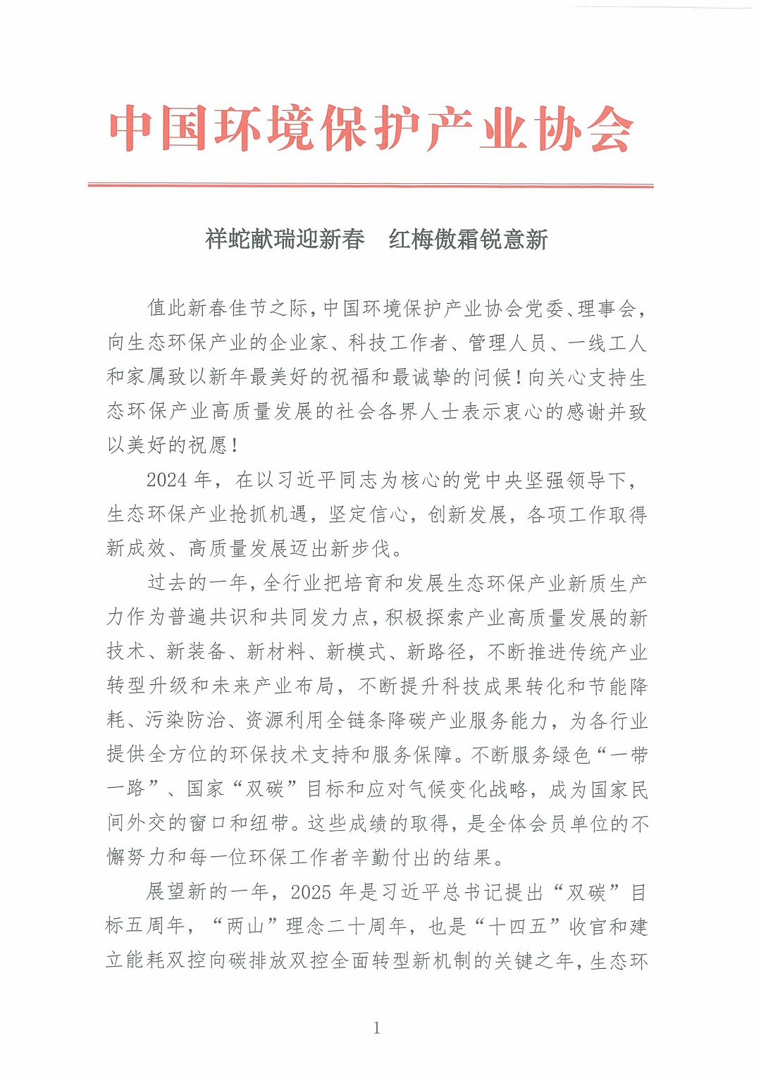 值此新春佳節到來(lái)之際,中環(huán)長(cháng)青憑借扎實(shí)的業(yè)務(wù)能力同時(shí)喜獲“中共北京市豐臺區委北京市豐臺區人民政府” 及“中國環(huán)境保護產(chǎn)業(yè)協(xié)會(huì )”新春賀信和感謝信。