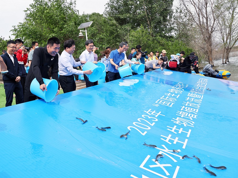 5月21日上午,北京市豐臺區人民政府、北京市豐臺區生態(tài)環(huán)境局配合農業(yè)農村部漁業(yè)漁政管理局、北京市農業(yè)農村局等單位在北京市園博園舉辦2023年“國際生物多樣性日”水生生物增殖放流活動(dòng),向北京的母親河永定河投放高體鳑鲏、赤眼鱒、馬口魚(yú)等土著(zhù)魚(yú)類(lèi)和鰱、鳙、草魚(yú)等凈水魚(yú)類(lèi)共計6萬(wàn)尾,以增加北京永定河流域水生生態(tài)的生物多樣性種類(lèi)和種群數量。