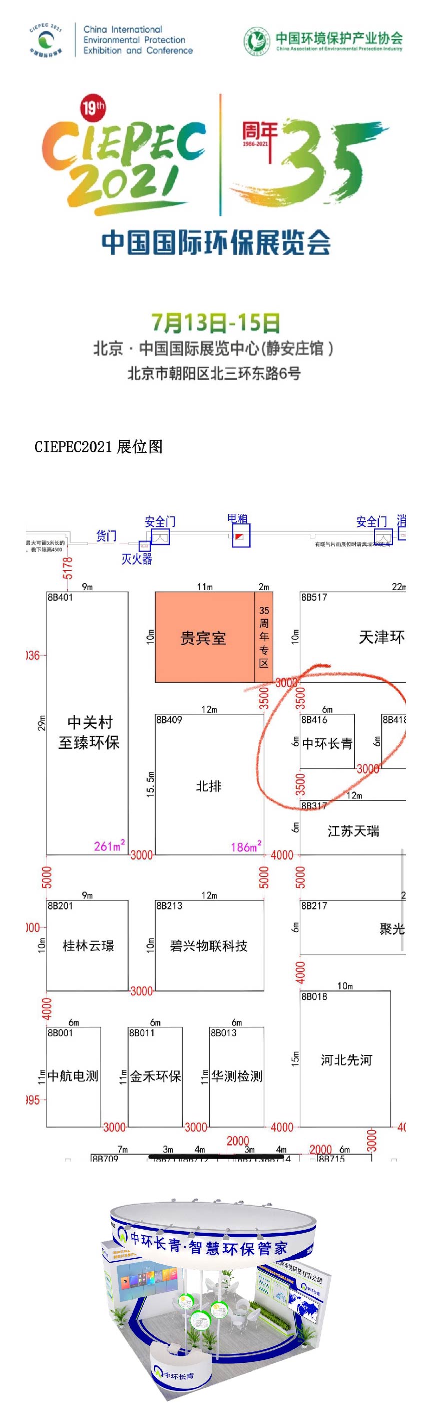 第十九屆中國國際環(huán)保展(CIEPEC)將于2021年7月13日到15日在北京中國國際展覽中心(靜安莊館)隆重舉行;中環(huán)長(cháng)青展位在8號館416展位;熱誠歡迎各位領(lǐng)導、專(zhuān)家、行業(yè)同仁、新老客戶(hù)蒞臨指導、參觀(guān)、交流。