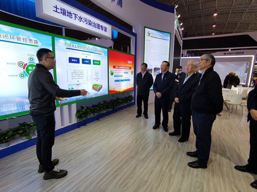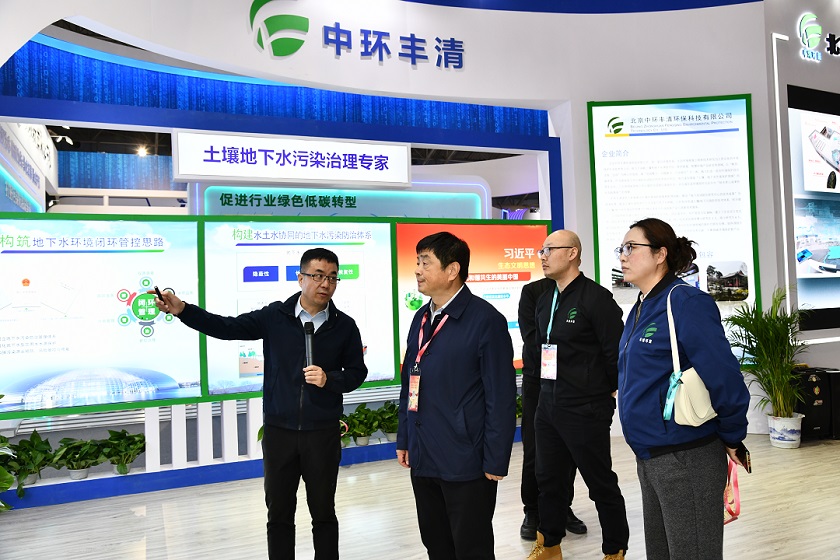 展會(huì )次日,生態(tài)環(huán)境部孫金龍書(shū)記率隊巡館第一站就來(lái)到中環(huán)豐清展區,聽(tīng)取中環(huán)豐清技術(shù)團隊在區域“地下水污染防治分區管控”、“飲用水源地補給區劃分與保護”、“地下水污染源頭管控與溯源”等方面的技術(shù)介紹,并深入聽(tīng)取了中環(huán)豐清團隊將“地下水監控傳感器算法寫(xiě)入技術(shù)、衛星與無(wú)人機偵測污水滲漏數據反演技術(shù)、土壤地下水生態(tài)價(jià)值提升精細化管控技術(shù)”作為企業(yè)發(fā)展的核心競爭力。