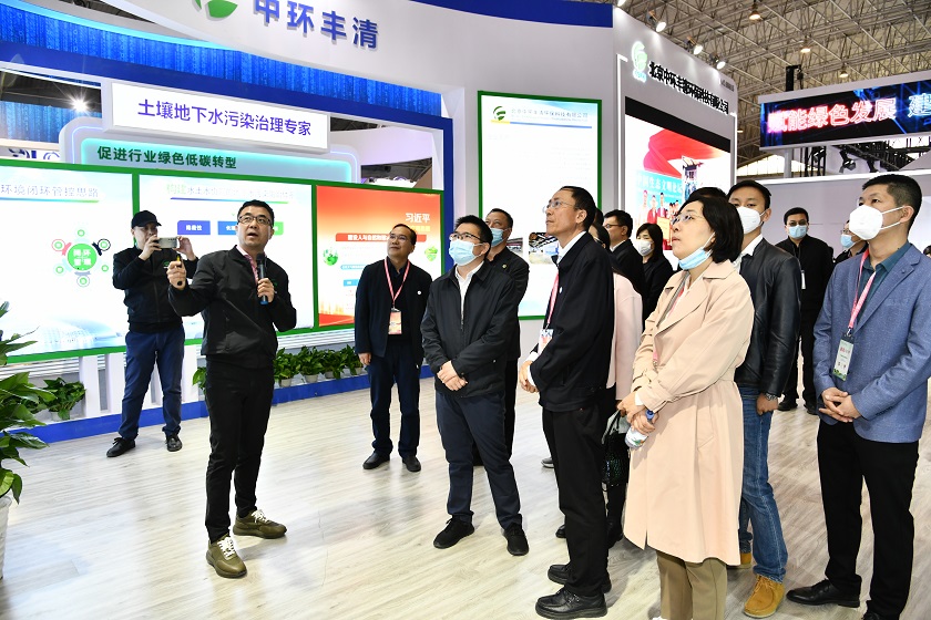 中國工程院院士任洪強教授、生態(tài)環(huán)境部黨組書(shū)記孫金龍、中國環(huán)保產(chǎn)業(yè)協(xié)會(huì )會(huì )長(cháng)郭承站、秘書(shū)長(cháng)滕建禮等領(lǐng)導專(zhuān)家分別蒞臨中環(huán)豐清展區調研指導。