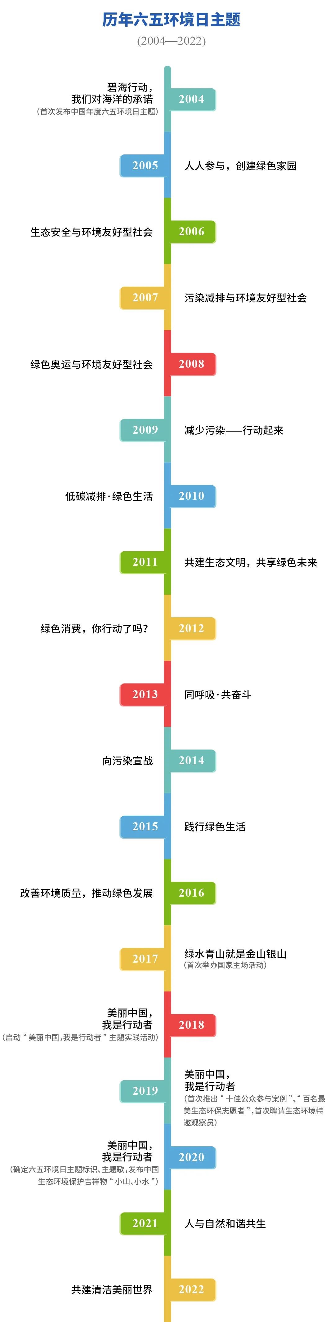 1972年6月5日在聯(lián)合國第一次人類(lèi)環(huán)境會(huì )議上中國代表團與113個(gè)國家和地區代表共同起草并通過(guò)了著(zhù)名的《人類(lèi)環(huán)境宣言》。同年10月,第27屆聯(lián)合國大會(huì )通過(guò)決議支持了該建議。為了紀念這個(gè)日子,6月5日成為“世界環(huán)境日”。2004年原國家環(huán)??偩质状伟l(fā)布了六五環(huán)境日中國主題:“碧海行動(dòng),我們對海洋的承諾”。2014年修訂通過(guò)的《中華人民共和國環(huán)境保護法》規定:每年6月5日為環(huán)境日,此后每年發(fā)布的六五環(huán)境日中國主題成為了所有熱愛(ài)生態(tài)環(huán)保事業(yè)人們的共同記憶。