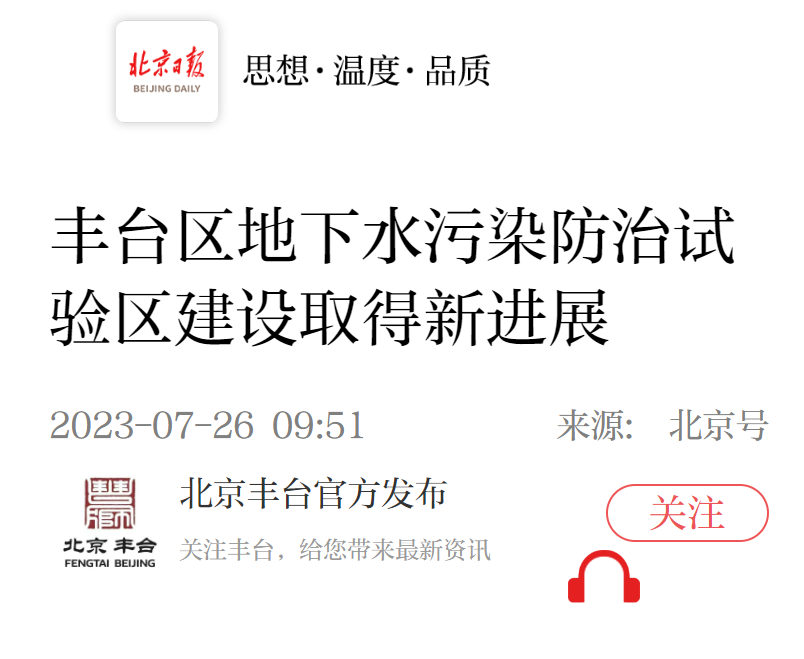 《北京日報》公眾號發(fā)布文章,介紹豐臺區地下水污染防治試驗區取得的新進(jìn)展(圖文)