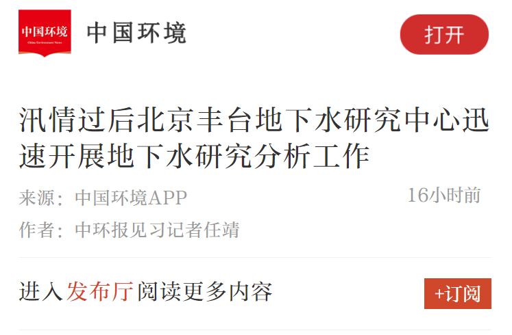 日前,《中國環(huán)境報》在其官方APP“中國環(huán)境”和視頻號“中環(huán)視頻”,發(fā)布題為《汛情過(guò)后北京豐臺地下水研究中心迅速開(kāi)展地下水研究分析工作》的文章及視頻,報道汛期后豐臺區地下水研究中心采取的一系列工作成果。