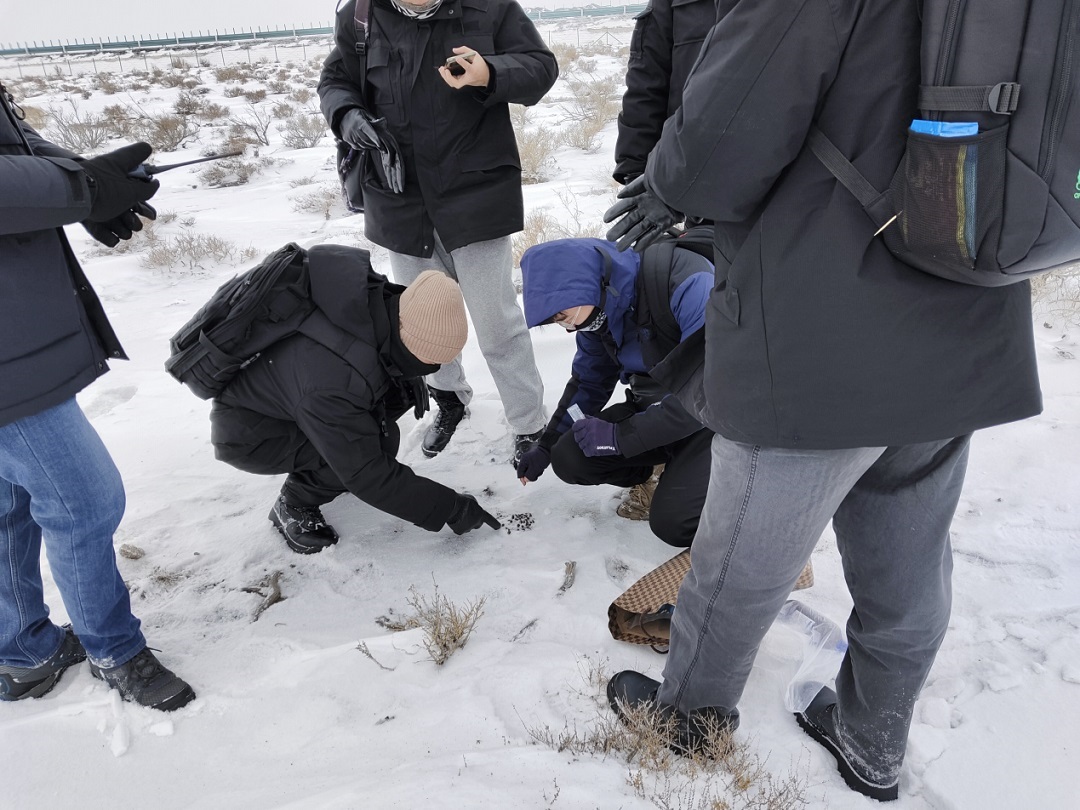 按照先期設定的樣線(xiàn),技術(shù)團隊在荒漠中開(kāi)啟了探尋野生動(dòng)物之旅,近距離地走進(jìn)了野生動(dòng)物的奇妙世界中。調查期間,團隊人員攜手同行,在雪后廣袤的荒漠中,搜索著(zhù)活體、足跡、糞便等每一處動(dòng)物蹤跡,記錄著(zhù)橋梁、涵洞、通道等每一處動(dòng)物通道,探尋著(zhù)食物、水源、隱蔽場(chǎng)所等每一處環(huán)境條件,最后選取了目標動(dòng)物經(jīng)常出沒(méi)的通道以及活動(dòng)痕跡密集處,補充設置了足夠數量的紅外相機,通過(guò)紅外相機自動(dòng)拍攝法捕捉和探究野生動(dòng)物的分布及活動(dòng)信息。