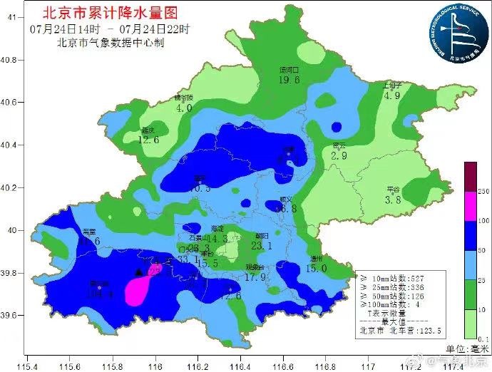 2024年7月24日14時(shí)至25日19時(shí)北京市經(jīng)歷了今年入汛以來(lái)歷時(shí)最長(cháng)、強度最大的一次強降雨過(guò)程。根據氣象部門(mén)統計,全市范圍內平均降雨量44.7毫米,達到大雨量級,全市18個(gè)氣象站降雨量超過(guò)100毫米,達到大暴雨量級,尤其是西南地區降雨強大最大。